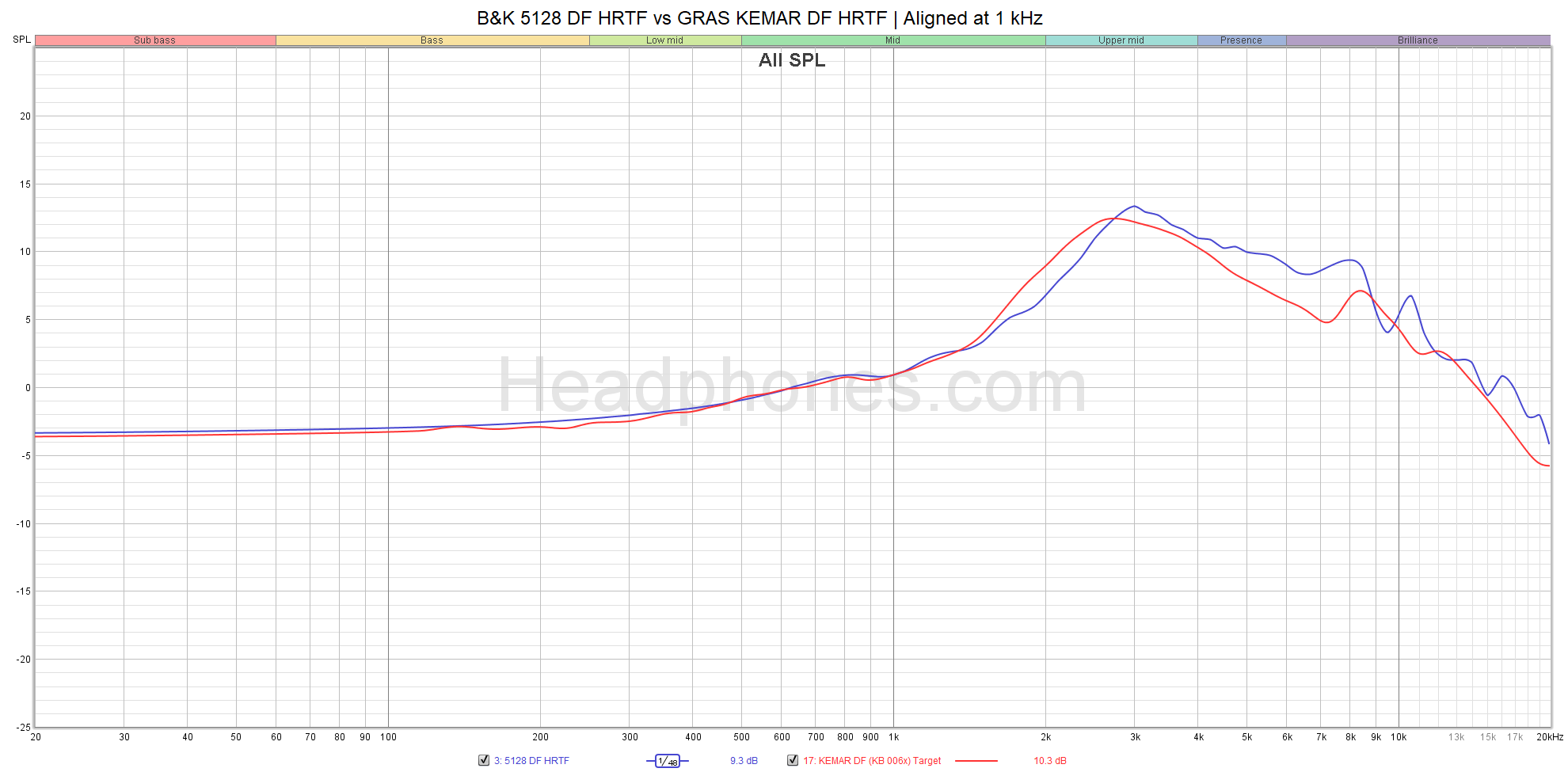- The DF HRTF calibration has a major trick up its sleeve - it can be used to make measurements done on different rigs compatible. While it may seem that the “more accurate” B&K 5128 would produce similar graphs to GRAS systems but with better lower and high frequencies, it’s not quite that straightforward. Raw measurements simply cannot be compared between systems because, as mentioned, they are effectively different “heads” with different “ears”. Thus, their measurements are inherently different.