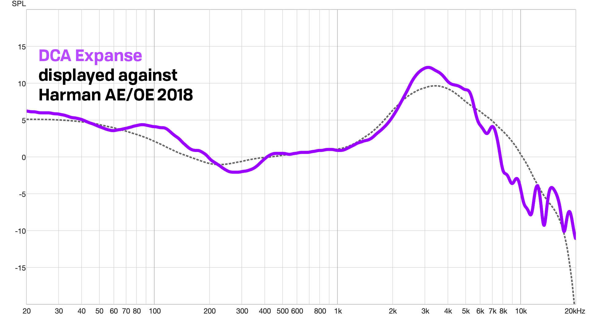 All right now let's move on to headphones that measure well that don't do it for us subjectively. So I'm going to start off with this one with the DCA Expanse. I actually didn't end up doing the review for this one but I have spent quite a bit of time with it. It's an open back headphone that measures what should be or what looks like very close to the Harman Target but I have two problems with it. One is that the upper treble and just the treble in general has a sloping roll-off. That's sort of the only way I could describe it. And this coupled with the focus more towards the low frequencies causes a kind of incomplete or almost muffled presentation overall, where it just doesn't sound quite like it has the right amount of extension. And it sounds, yeah, just a little bit on the cloying and stifled side of things. But the other problem is that for whatever reason with that headphone, maybe it's also in part because of the ergonomic design or how it sits on my head. The acoustic metamaterial tuning system that they're using there in front of the driver, for whatever reason, doesn't seem to work for my ear. And it causes a whole bunch of really harsh resonances throughout the treble for me, such that like to me, that's a headphone that actually sounds considerably worse than like headphones that cost, you know, like $100, right? Like the AG400SE sounds better to me, even though. The expanse measures objectively quite a bit better. I think if you're the kind of person where the AMTS does work, this is likely to be a lot more palatable than it was for me. But what about you guys?