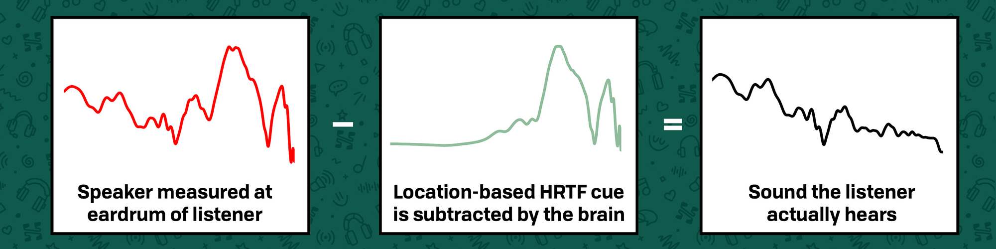 With speakers for example, we hear past any of the chaotic-looking HRTF-based frequency response cues shown in Fig. 5, only hearing “the tone and location of the speaker itself.”