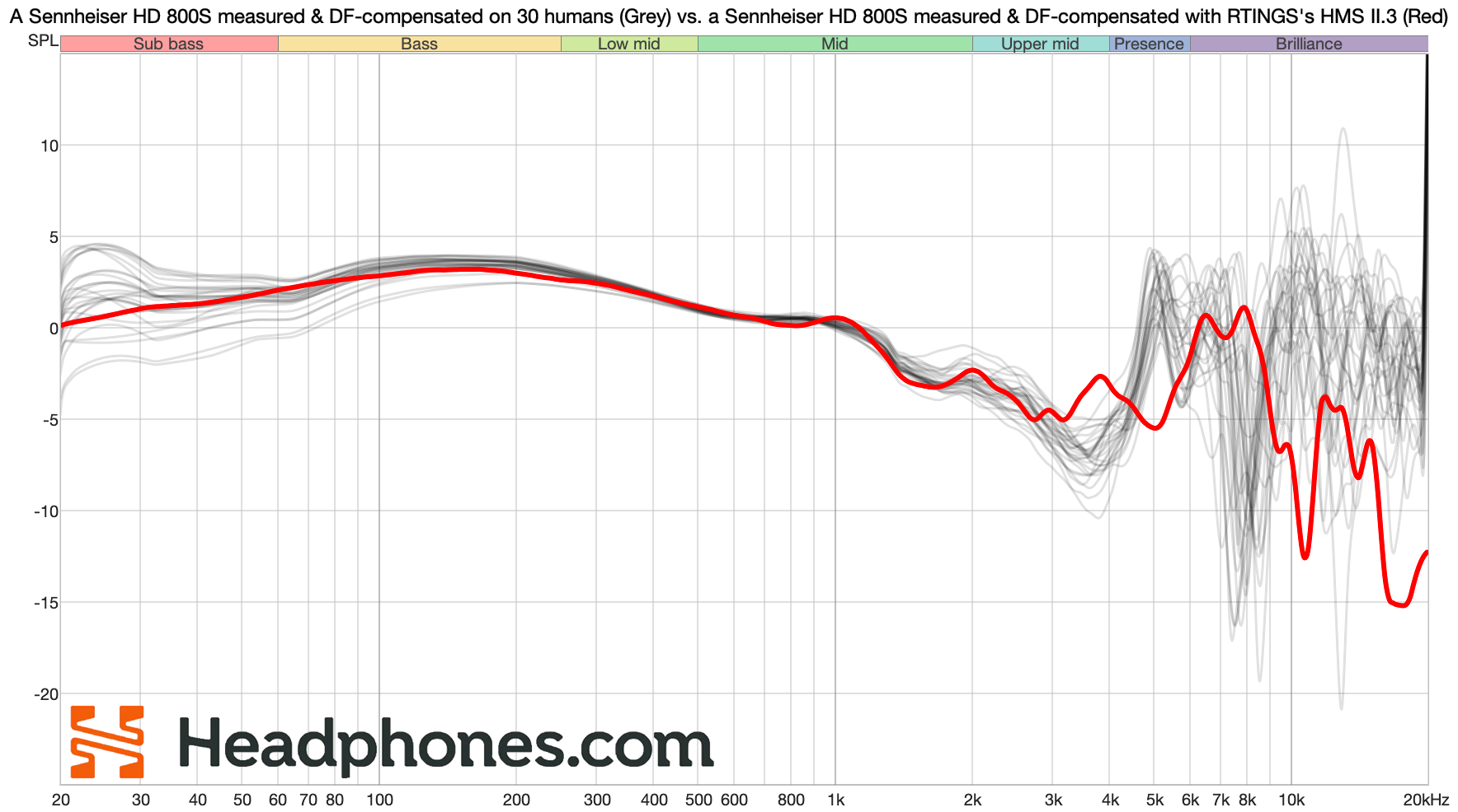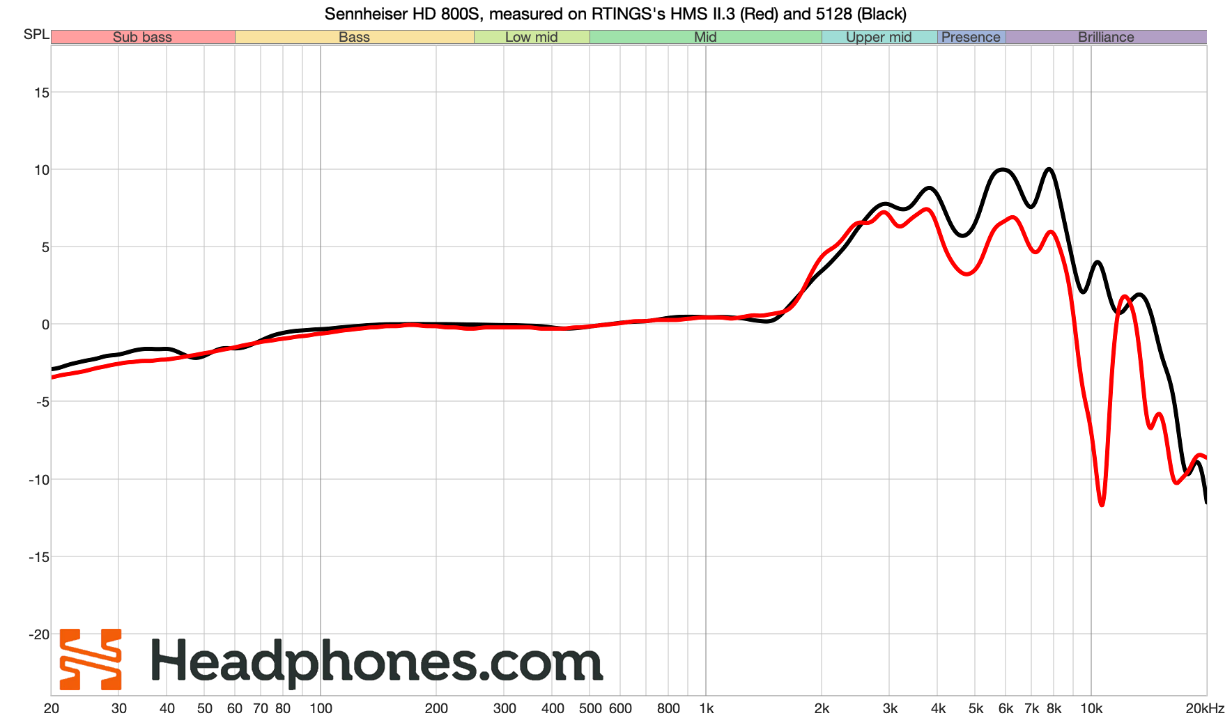 Fig. 14: RTINGS’s HD 800S measured on their HEAD Acoustics HMS II.3 and their B&K 5128 Credit: RTINGS