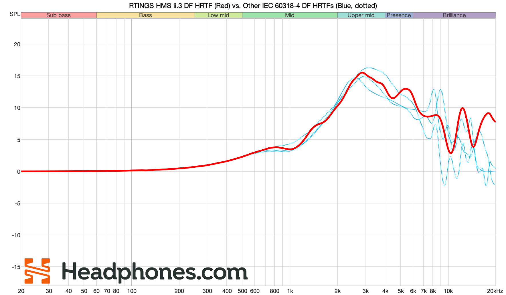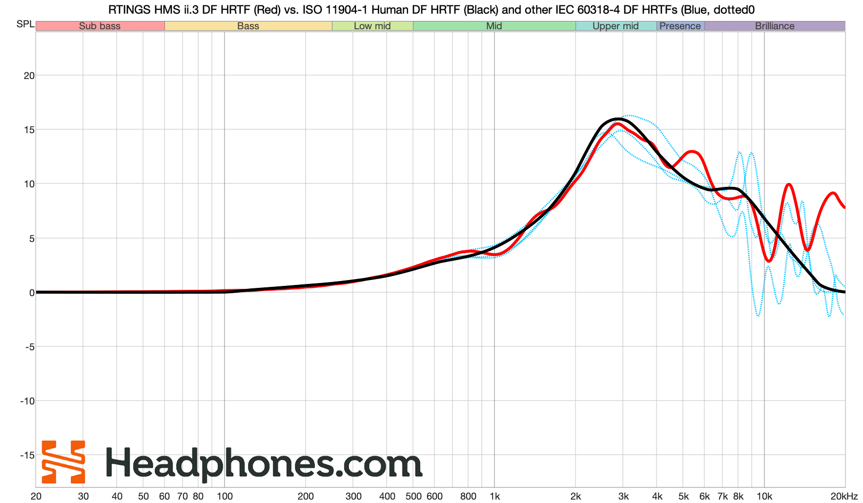 The 10 kHz feature RTINGS is assigning significance to here is not only rig-specific, but also unlike the typical response a human may get with this kind of headphone. This may be why we see the HMS II.3 and other heads adherent to this standard only being rated for accuracy up to 8-10 kHz or so.