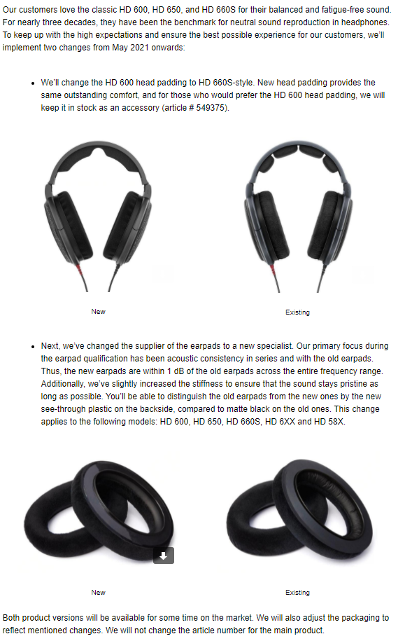 Here is Sennheiser's communication regarding the changes to their earpads.