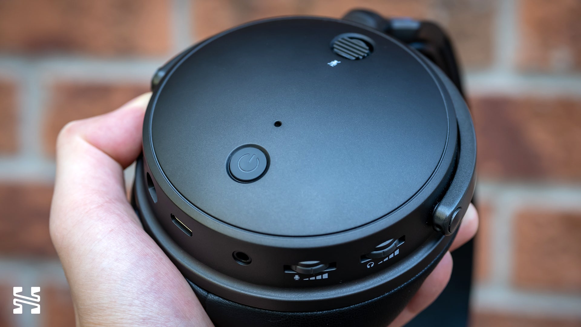 - On the bottom is a button for controlling the AI-enhanced noise reduction feature and two dials: one to control volume, the other for the Audeze HQ Game/Chat balance function.