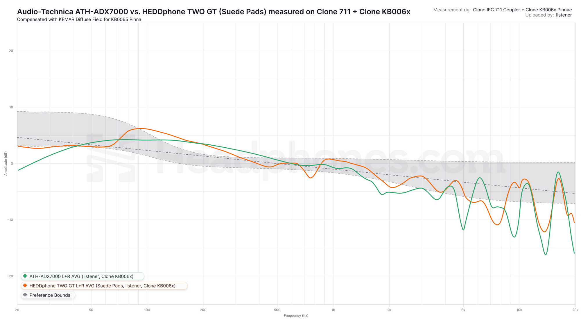 That said, I think when it comes right down to it, the ATH-ADX7000 is a better sounding headphone, as it does the things HEDDphone TWO GT does well, almost as well, while improving a bit in the treble and improving a lot when it comes to the sense of spaciousness. HEDDphone TWO GT has a fun trick when it comes to lateral spacing of hard-panned elements, but otherwise it can sound rather closed-in. ATH-ADX7000 doesn’t have this problem, considering it’s one of the most spacious dynamic driver headphones I’ve heard, and it also has a more listenable—if still imperfect—treble response.