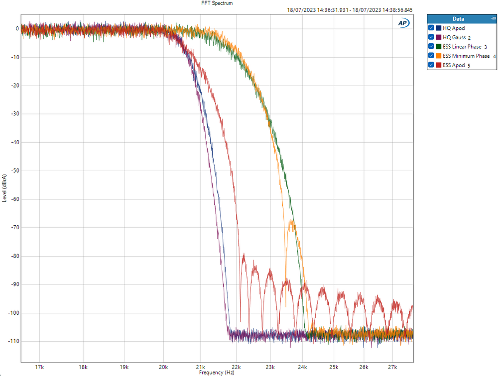 HQ Apod filter fully attenuates by 22.05khz, whilst not rolling off under 20khz