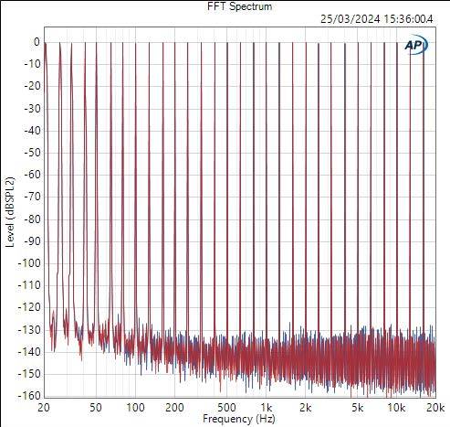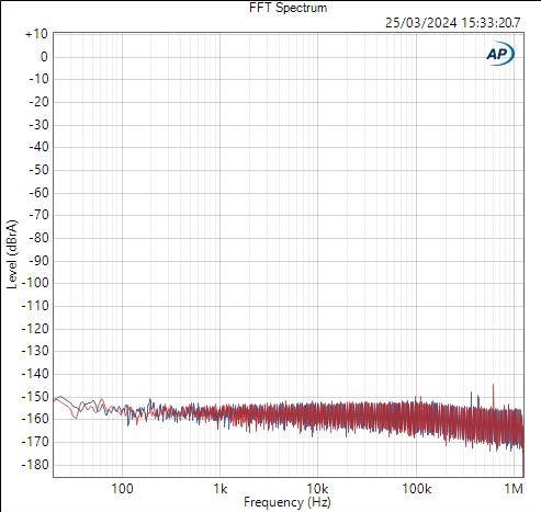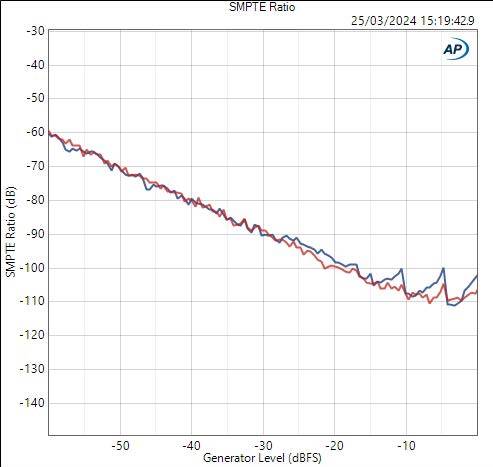 (96khz bandwidth used on the analyzer. Don’t compare this directly to standalone audible band THD+N measurements as the measurement setup is not the same.)