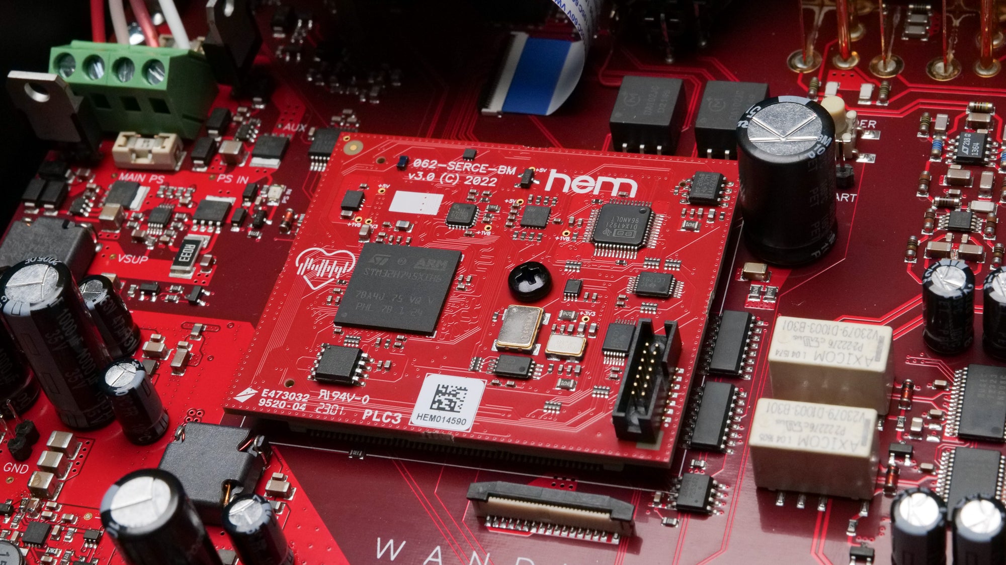Taking a look at the internals of the WANDLA, the first thing one might notice is the daughterboard in the centre of the device, called SERCE. This an all in one audio control board that acts as the brain of the device, handling all controls, outputting to the display, providing receiver functionality for all digital inputs including USB (no XMOS chip is used in the WANDLA), and offers flexibility for higher performance digital audio processing than what is available on a standard DAC chip.