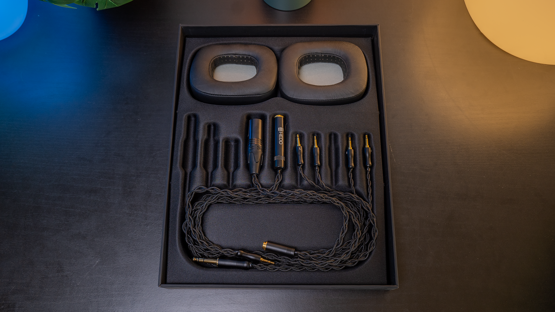 Starting with the accessories, this is where the HEDDphone Two GT is likely to impress basically anyone who happens to open the box. Buyers are greeted with two compartments, one for the headphone and its large-but-reasonably-portable hardshell carrying case, and another for the rest of the accessories. Buyers receive two cables—6.3mm TRS single-ended and 4.4mm Pentaconn balanced—as well as adapters to 3.5mm TRS and 4-pin XLR respectively, and a pair of extra earpads.