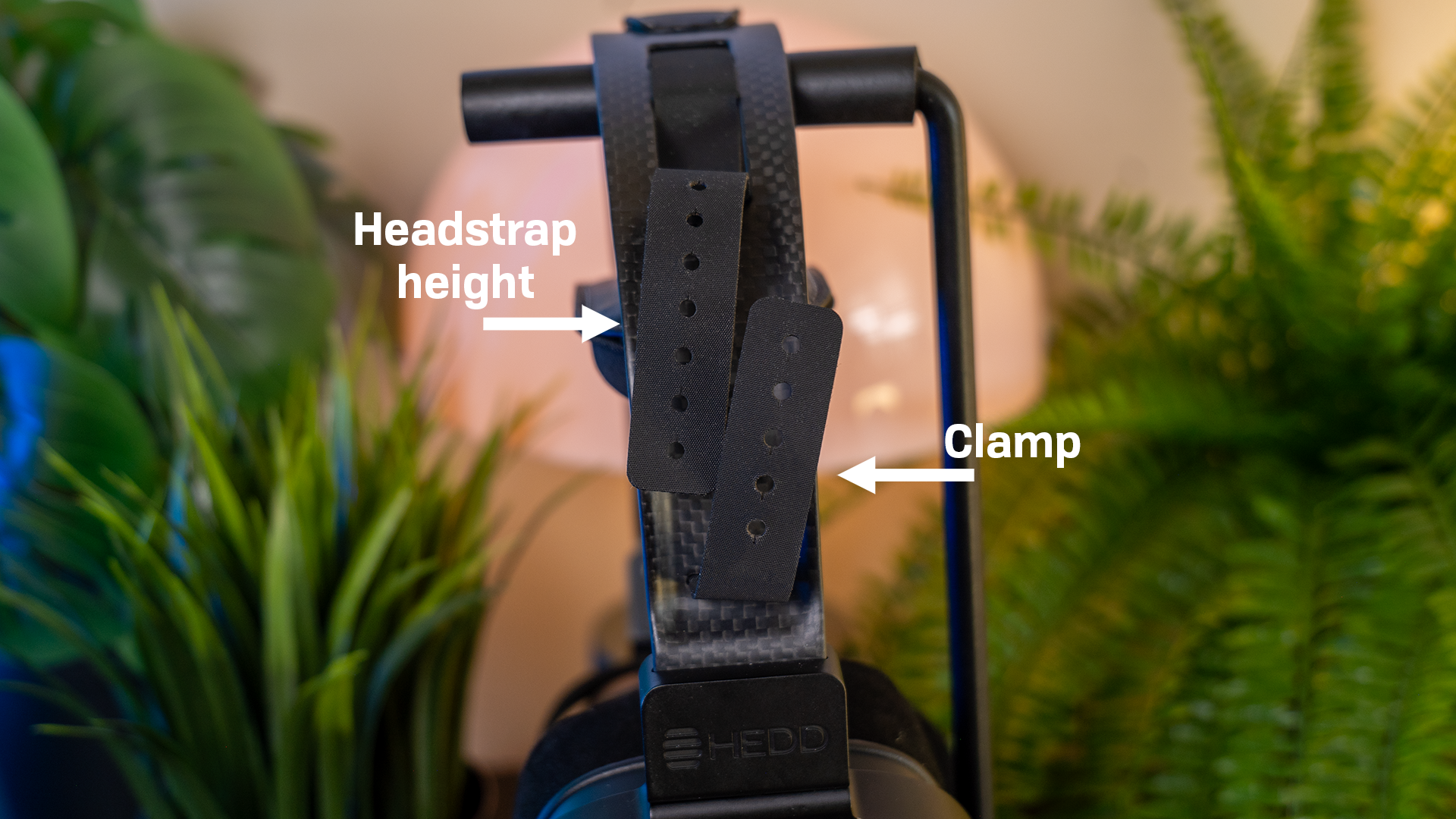 However, the accessories and visual design are where the praise must end, because there are also some unfortunate design choices made here—the most glaring of which has to do with the headband. While I commend HEDD for trying something truly unique and offering a two-point adjustment system for headstrap height and headband clamp force, this system has two pretty glaring flaws.