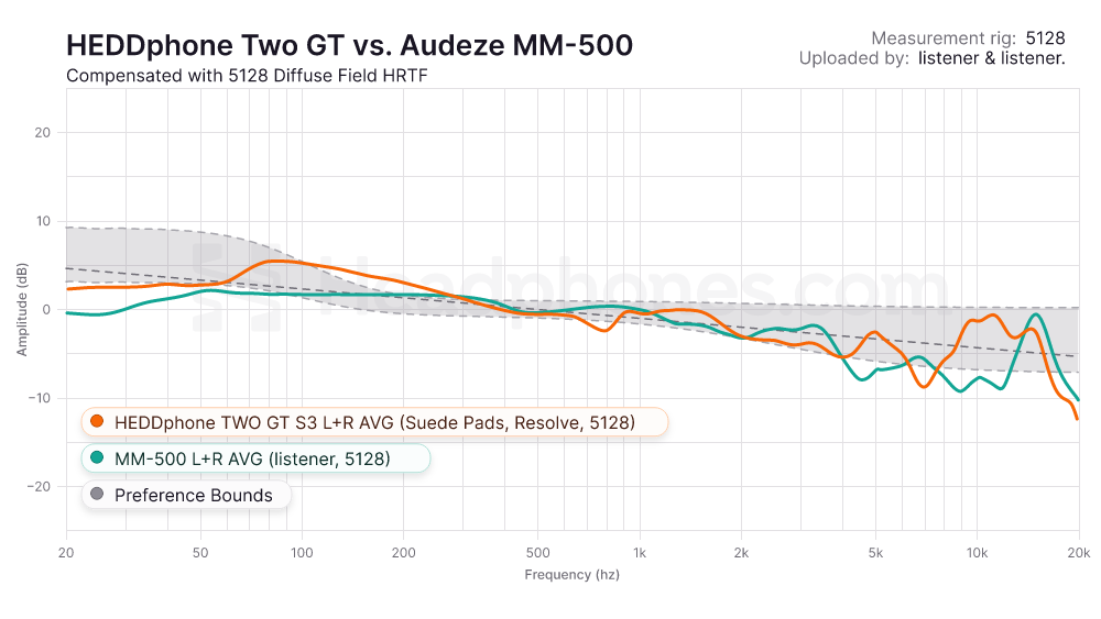 The Audeze MM-500 is my other choice for “expensive headphone, but actually tuned well,” so it seems the obvious comparison point considering above its price point, I think headphones only get less neutral, not more.
