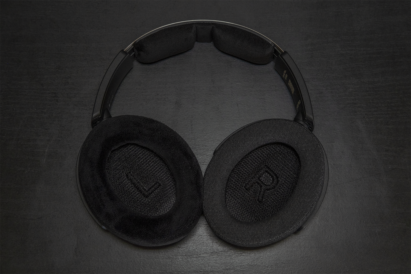 My main gripe with this design in terms of comfort would probably be the lack of suspension strap. After all these years, I remain surprised that Sennheiser isn’t interested in exploring one. But here we get a slightly different take on the “two nugget” headband padding that you find on the HD 5 series, and we get two versions (in the Plus version of this headphone) of the headband pad included in the box. They’re both soft for sure, but a little bit too thin overall—both in thickness and in width. They’re just comfortable enough to allow someone to use the headphone for an hour or two (but not much longer) without getting a hotspot.