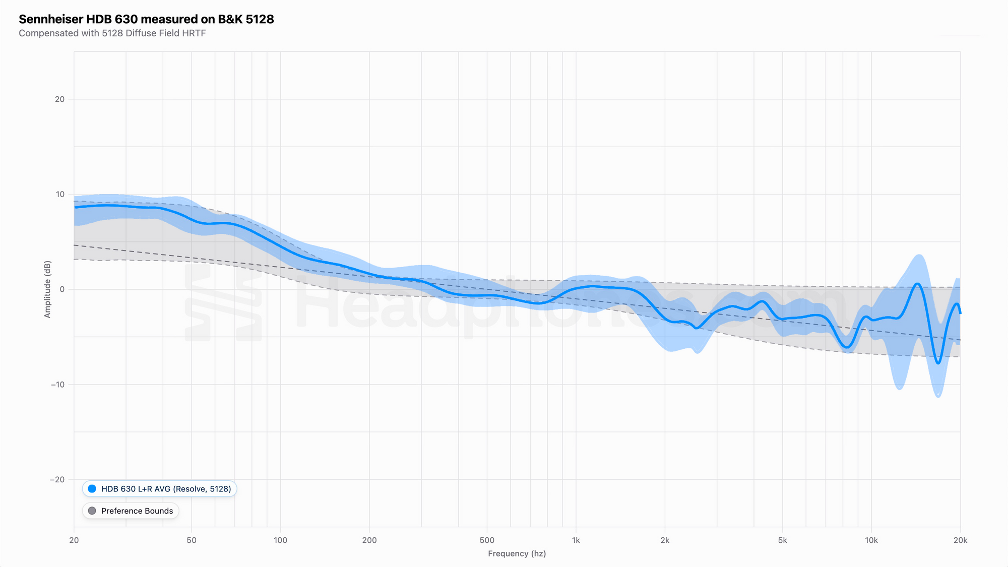 Measured on a B&K 5128, the HDB 630 shows excellent wideband balance with a few quirks.
