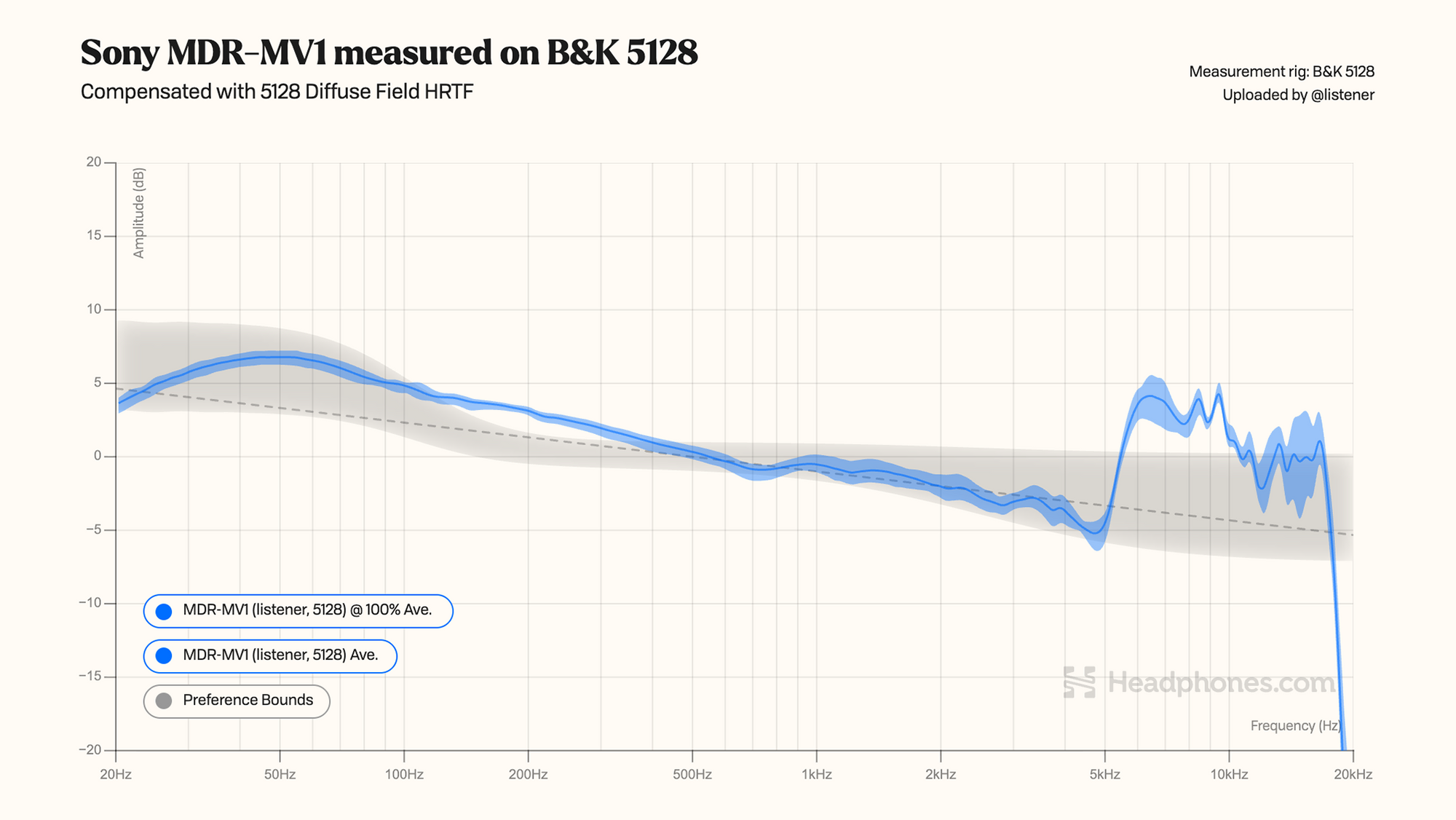 If you’ve seen graphs of the MDR-MV1 on industry-standard test fixtures, you’ve probably noticed a massive peak in the lower mid-treble—somewhere around 6 to 8 kHz. A lot of people see that and immediately write the headphone off as unbearably bright.