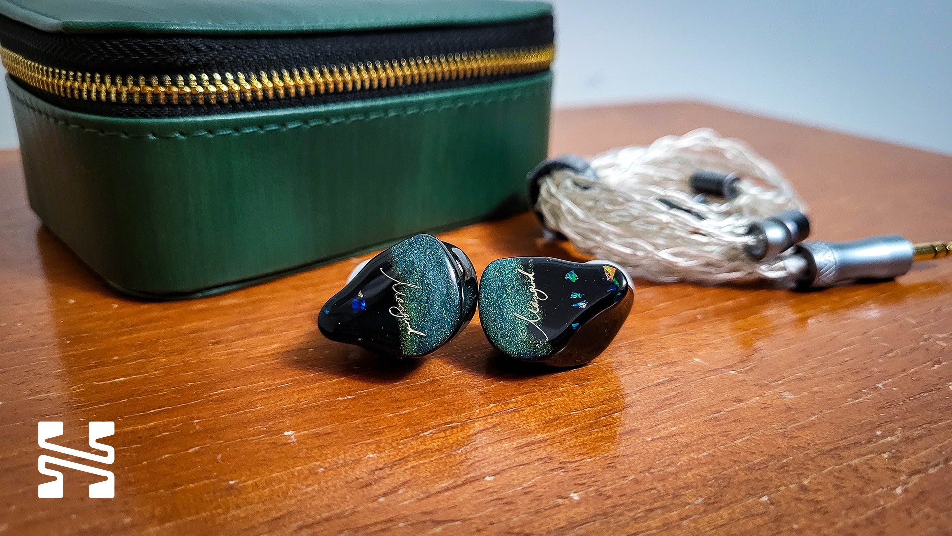 - A large green IEM case. It’s pretty nice. Inside is fur-lined with separate compartments for the left and right sides.