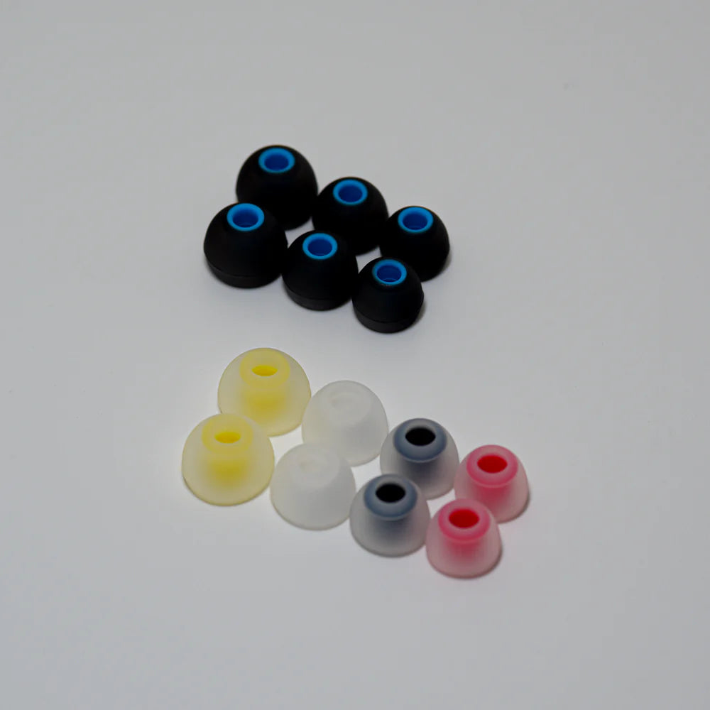The Titan ensures a flawless fit for every listener with a comprehensive set of Symphonium Premium Wide-Bore Tips in color-coded translucent white, as well as Symphonium House Tips custom ordered in blue.